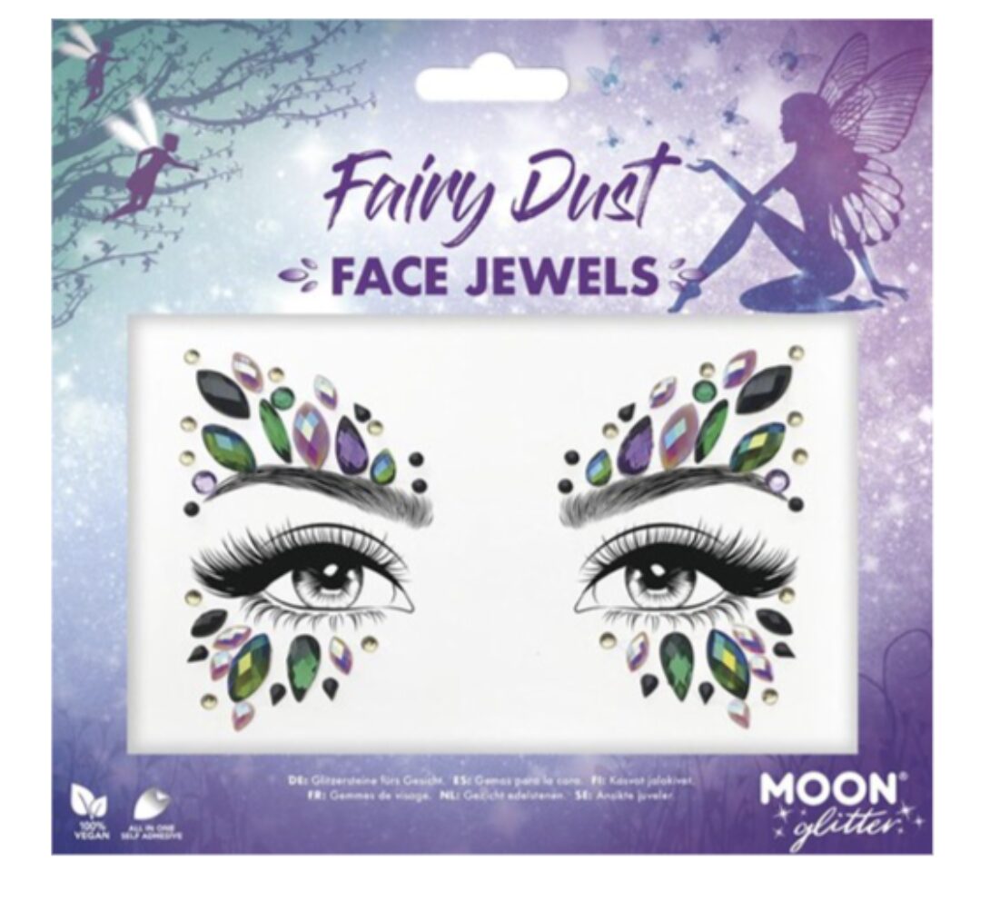 De Face jewels of face gems bestaan uit plaksteentjes. De Face Jewels zitten op een vel geplakt met transparante lijm. Voor een mooie festivallook breng je rondom de steentjes wat glitter creme of glittergel aan. Voordat je bezig gaat met het versieren van je gezicht is het verstandig om je huid te reinigen, als je dit doet blijven de stenen beter plakken. Verwijder vervolgens voorzichtig de steentjes van de verpakking. Druk de steentjes drie tot vijf seconden aan op de gewenste plek. De aanwezige lijmlaag zorgt ervoor dat de steentjes vanzelf blijven plakken. Wil je zeker weten dat jouw Face jewels de gehele avond blijven zitten? Dan raden we je aan om hem te bevestigingen met mastix. Deze huidlijm is transparant en je hebt maar een kleine hoeveelheid nodig.